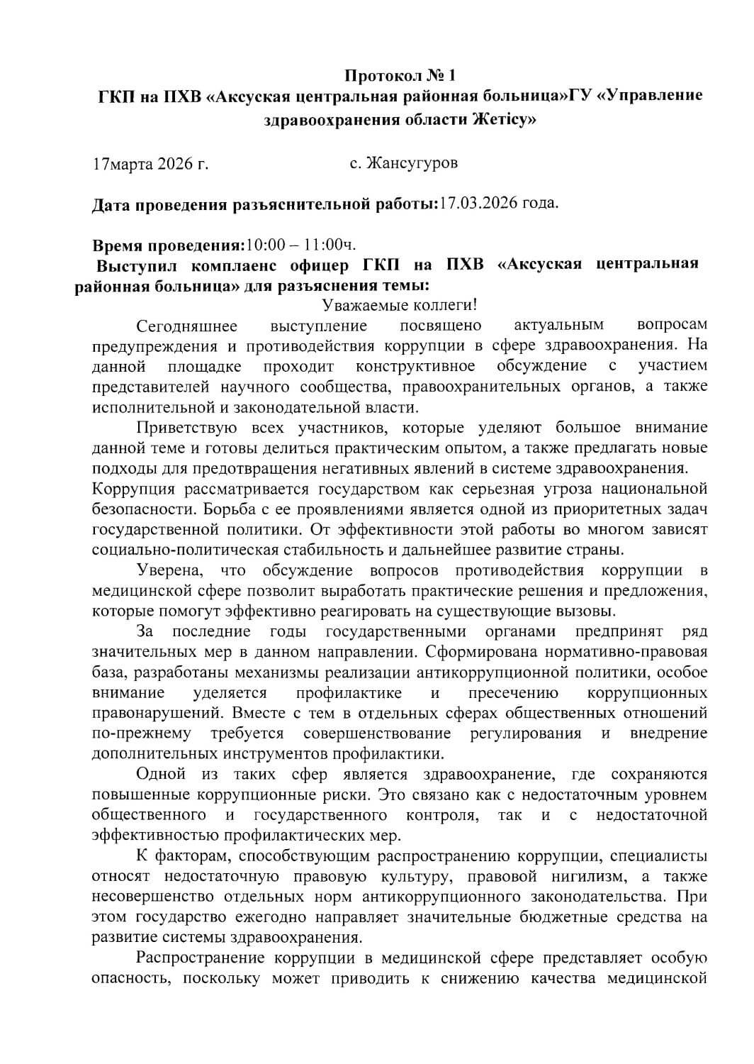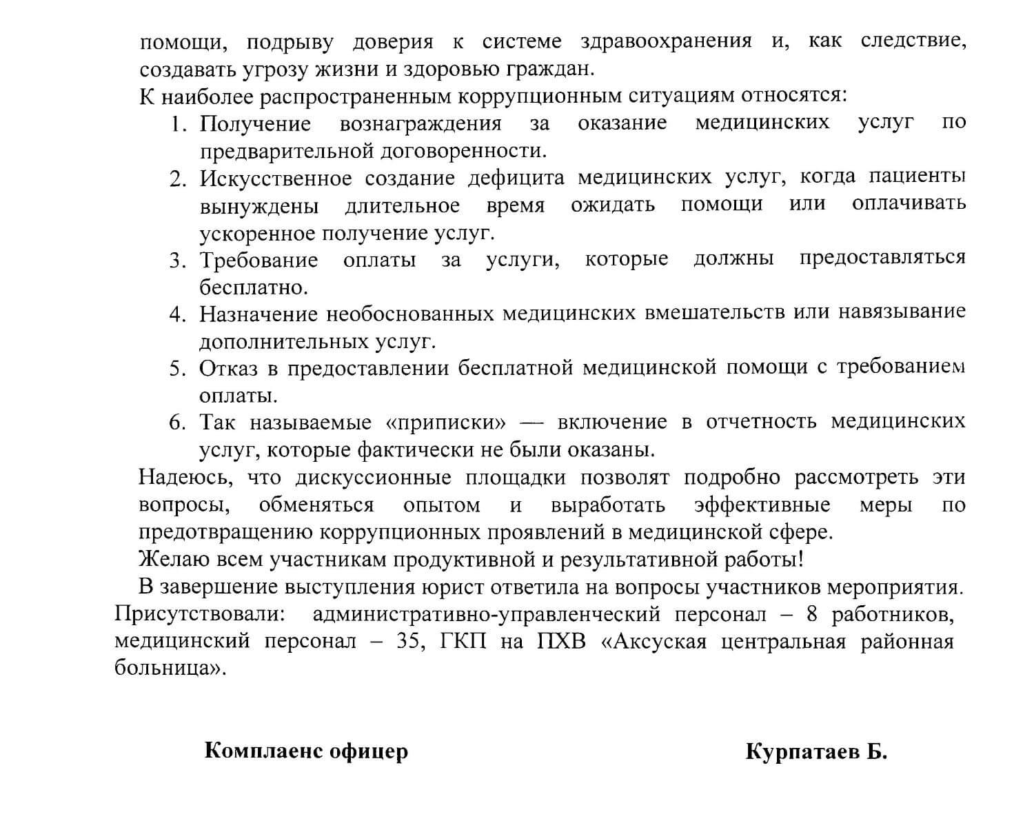 17 марта Комплаенс офицером была проведена беседа на тему «Актуальные вопросы предупреждения и противодействия коррупции в системе здравоохранения» Загрузить документ - pdf